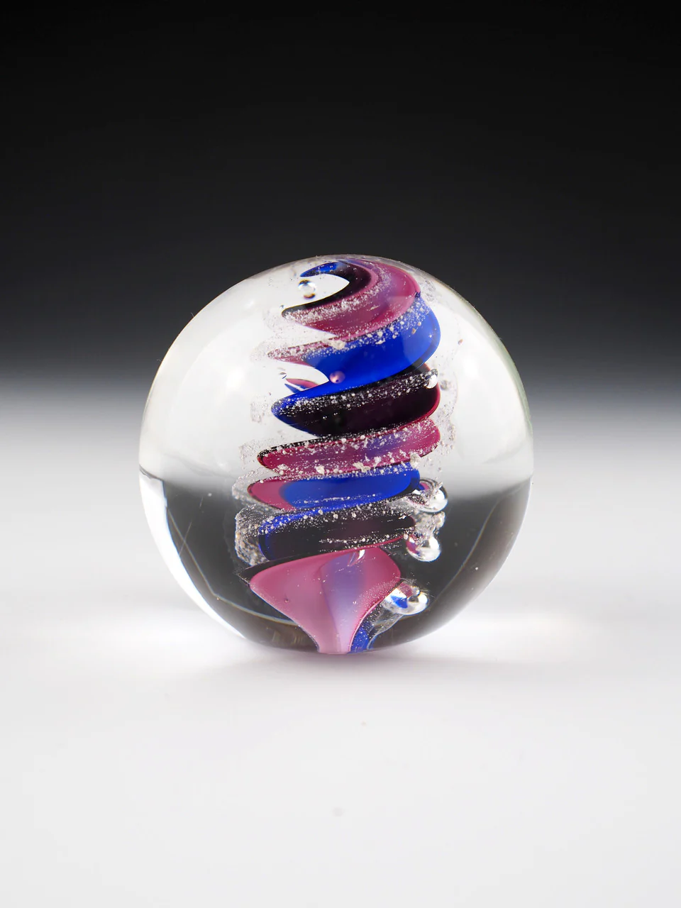 The Astral Swirl Multicolor Memorial Paperweight Orb adds a vibrant touch to our classic design, featuring a colorful swirl of ashes encased in a clear glass sphere.