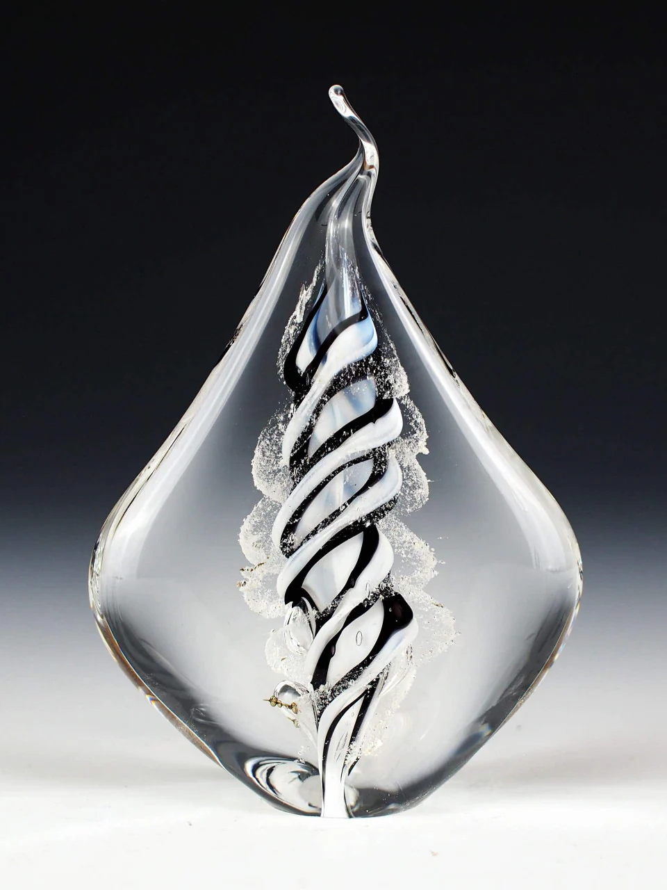 The Eternal Multicolor Flame offers a vibrant twist on our classic design, featuring a colorful core around which your loved one's ashes spiral. Made from both clear and colored molten glass, this memorial is a lasting and beautiful tribute.