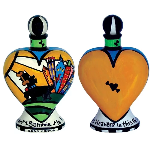 Dogs are part of the family and there is no better way to commemorate the loss of your beloved doggie by choosing this personalised and unique urn. Each heart-shaped piece is handmade by the artist. The urn is customisable by adding your dog’s personal details.